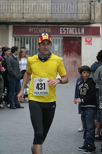 Como siempre salimos más tarde de lo pactado y llegamos sin tiempo, ya no sólo de calentar, sino de cambiarnos de ropa y de seguir el ritual de lo habitual…Sin tiempo ni de saludar a los pocos conocidos que por allí había, comienza la carrera (un rodajito suave con 500mts de desnivel para hacer relajados en una mañana de domingo)..o eso pensábamos, porque habían cambiado el recorrido del año pasado…se iban sucediendo cuestas y más cuestas, se iban estrechando los caminos, hasta desaparecer, aparecían marcas que hacían descender por sitios imposibles…rocas y troncos para saltar y esquivar, subidas donde había que agarrarse a los árboles para no caerse para atrás...