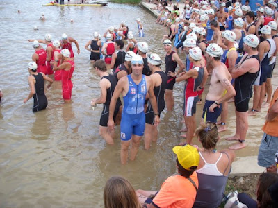 Calentamos un poco en el agua y nos preparamos para la salida, tras varias discusiones con la organización, salimos desde el agua, Raúl y yo desde la orilla y el resto del equipo por detrás.