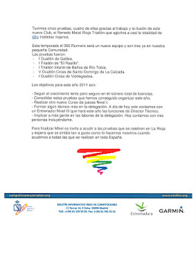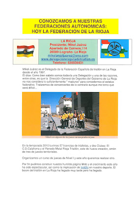 El boletín de la FETRI (Fed. Española de Triatlón) del 18-01-11 presenta a la delegación de La Rioja y a nuestro equipo