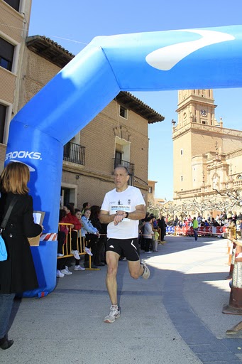 Bueno, pues otra más para la saca; y van…….. A las 10:30 quedo con Víctor para compartir coche y nos dirigimos hacia Aldeanueva. Vamos por autopista, pero en realidad no sabemos a dónde vamos. Pasamos la salida de Calahorra y, tan contentos, seguimos hacia la de Alfaro. “Creo que tan lejos no es”, le digo yo a Víctor. “Pues ni puta idea, donde está Aldeanueva”, me dice Víctor. “Pero, macho, tú no eres Riojano”, le increpo. “Sí, pero yo qué chorra sé” (Típica expresión riojana que delata sus orígenes). En la salida de Alfaro le preguntamos a la chica del peaje y….media vuelta. Llamamos a Juan Carlos, para que nos vaya recogiendo los dorsales. Llegamos 25 minutos antes de la salida y me voy a por los dorsales (nos quedamos sin camiseta por tardones). Un calentamiento rápido y: preparados, listos ¡ya!, pero antes un minuto de silencio en memoria de……, ni idea. Una salidita neutralizada de unos 200 metros y hala, ¡maricón el último! (Alguno se queda rezagado a propósito). A partir de aquí, cuento mi vivencia: Para no variar, nada más empezar ya me quedo solo, marcando un ritmo de 3’40. Voy bien de respiración, pero las piernas no van lo sueltas que debieran (¿me estaré poniendo cachas de tanto gimnasio?). Damos 4 vueltas a un circuito de 2500 metros. La temperatura es perfecta, un poquito de viento y un recorrido plano pero engañoso (tenía sus rampitas). Voy toda la carrera en 9ª posición, hasta que a falta de 2 kilómetros me adelantan 5 tíos y acabo el 14º de la general y con la medalla de chocolate en mi categoría (me cachis). Mi tiempo es de 36’53, pero no acabo contento. En la última vuelta, doblé a Juan Carlos, que iba tocándose la chorra (típica parte masculina riojana), con unos colegas de Arnedo. Juan Carlos había venido desde Arnedo en bici y se volvía en el mismo medio de transporte, una vez acabada la carrera ¡ole tus güevos! (típica expresión andaluza). Justo cuando doblo a la “cuadrilla arnediana”, hago lo propio con un tío con la camiseta del club ¡TIRANDO DE UN CARRITO DE NIÑOS! (si es que hay gente pa’toò, que dicen también por ahí abajo). Luego, en meta, le conoceríamos: Tuesta. Víctor, acaba a poco menos de 3’ detrás de mí. ¡Menuda máquina! Ayer se metió 88km de bici, haciendo el recorrido de Galilea y, aún así, baja de 40’. Lo dicho: este tío va a dar mucha guerra, y si no, al tiempo. Al final, reparto de premios y pa’ nosotros nà de ná. Camino de vuelta tranquilito hacia Logroño y cada mochuelo a su olivo. Ahora, toca esperar para el DU de Galilea, que parece que aún queda, pero ¡lo tenemos ahí mismo! Nos vemossssssssss. PD: Pongo un par de fotos. De Víctor y de Juan Carlos no he visto ninguna (lo siento si me las he saltado). Fdo: Curro