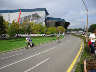 dorsales. Todo Gijón plagado de gente con cascos aero y sus bicis de crono con