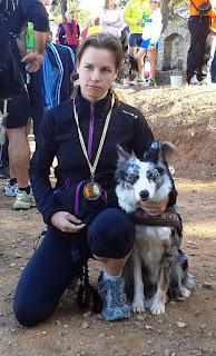 Como desconocía el circuito y visto las cuestas que había, decidí no apretar mucho por si todo el recorrido era igual, asique al principio, la Lola y yo nos quedamos en una posición bastante retrasada. Cuando empezó el descenso, y como sólo quedaba aproximadamente kilómetro y medio decidí aumentar velocidad y gracias a la ayuda de la Lola cogimos buena posición entre la categoría femenina, fuimos terceras en la clasificación general femenina y segundas de la categoría sénior!!! La primera vez que gano algo en una carrera!!! Y gracias a la Lola!!!
